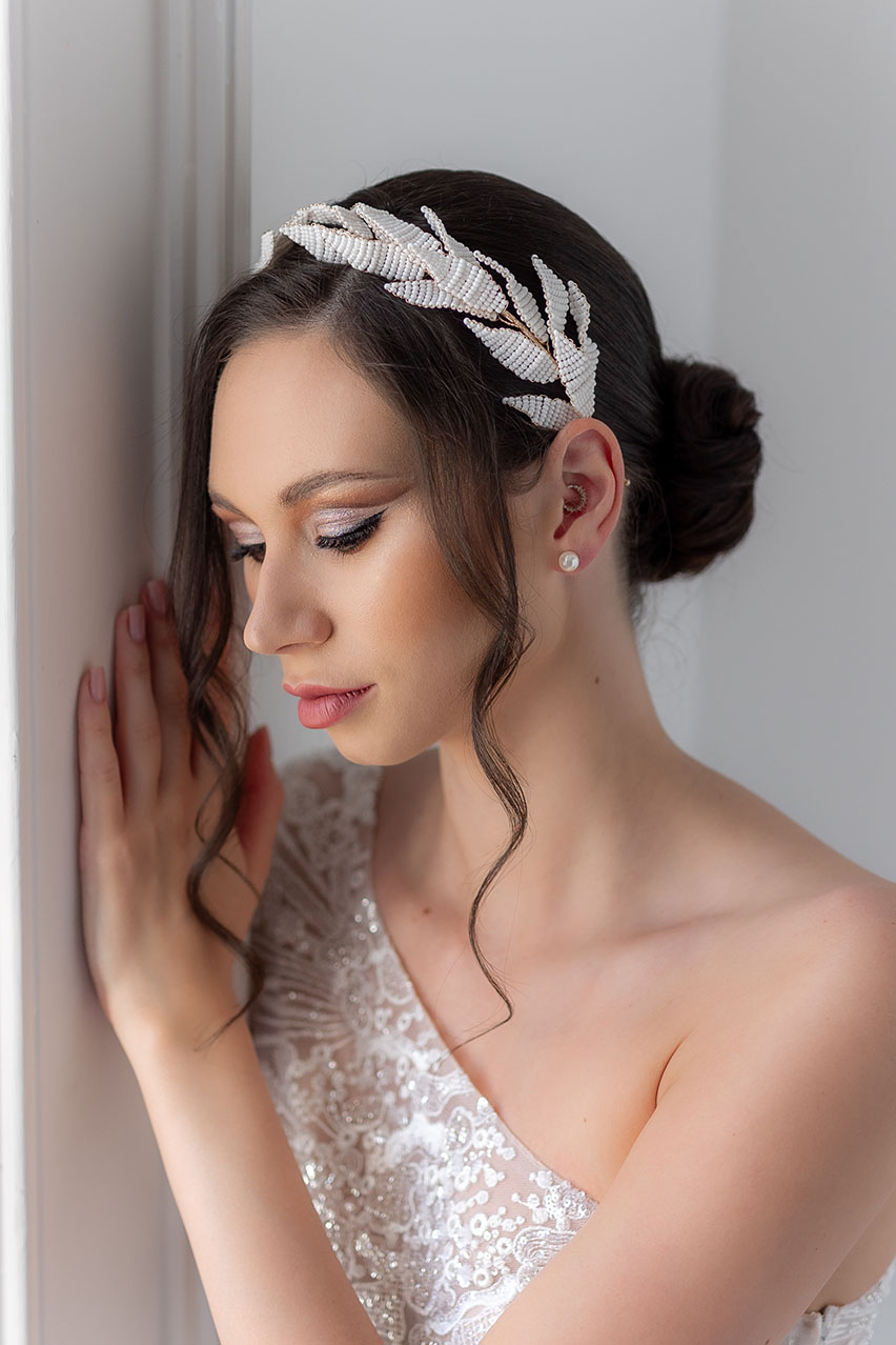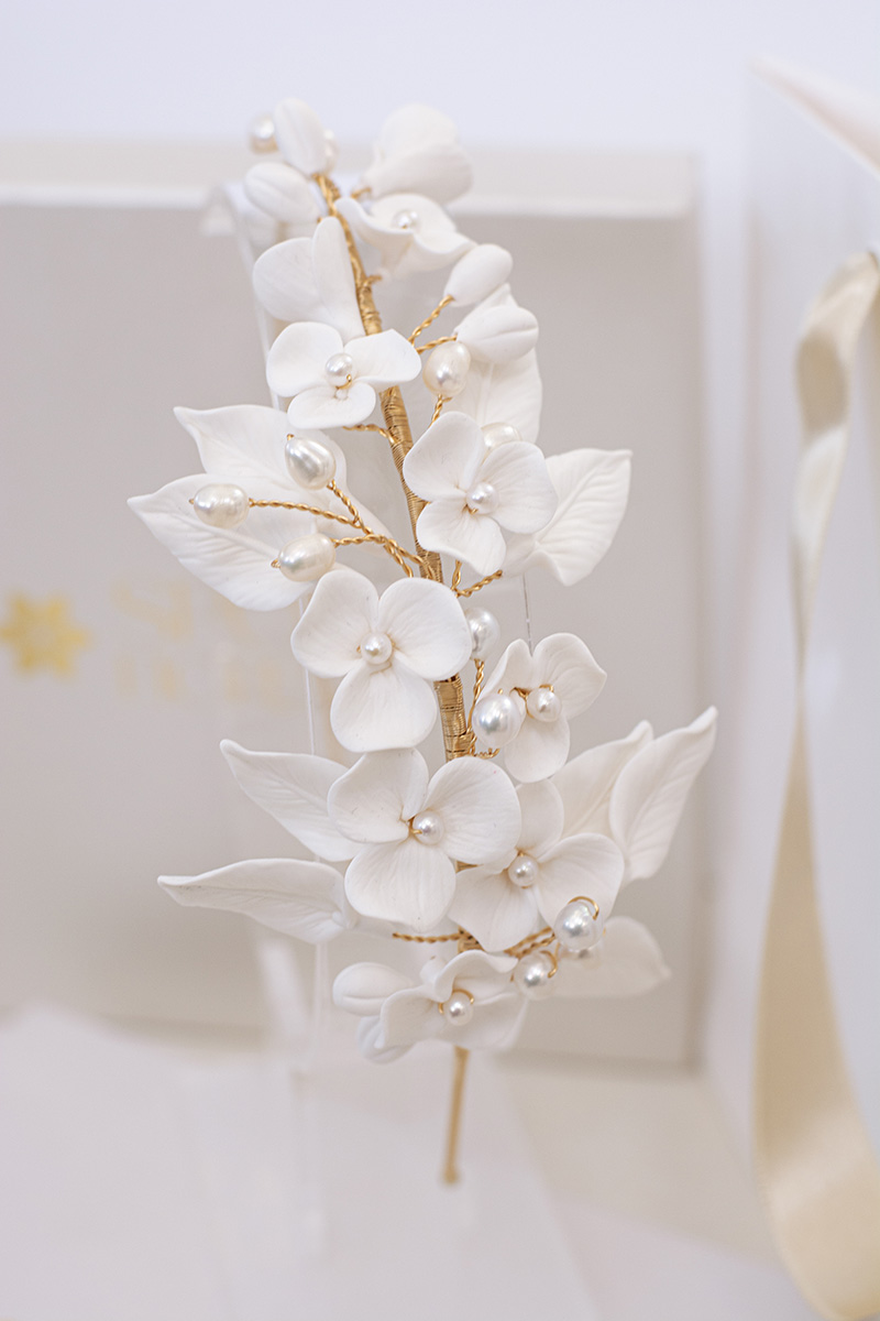 Explore our unique collection of bridal headbands, beautifully handcrafted with porcelain flowers, pearls and crystals. Bridal headbands are the perfect choice if you want a timeless and secure hairstyle without compromising on comfort. Whether you prefer a delicate minimalist look or a statement piece, our handmade headbands add elegance and sophistication to any bridal style. Each headband is lightweight, comfortable, and designed to be worn all day long.